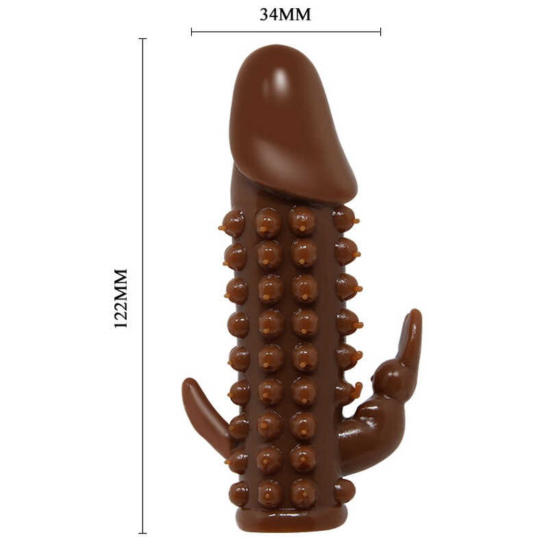 Насадка рельефная с клиторальным стимулятором "Wolftooth" коричневая